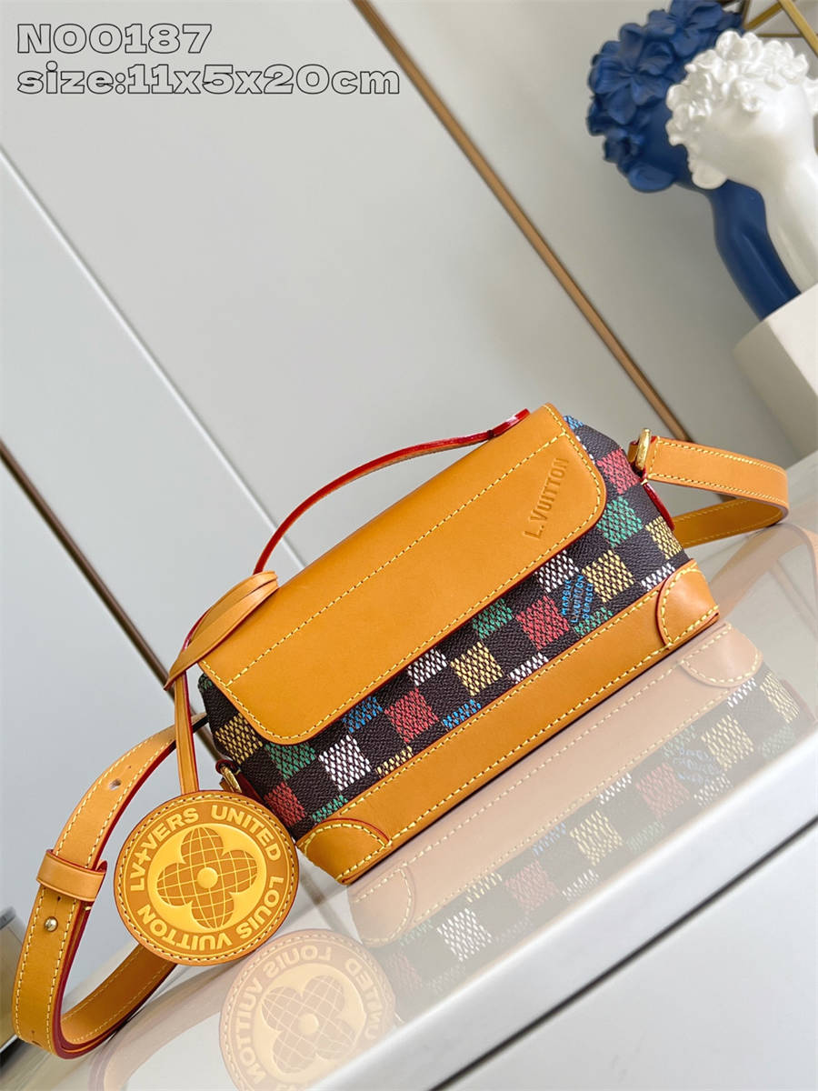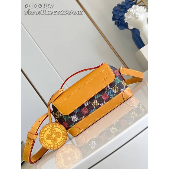 GIK【独家实拍 N00187 】LV Steamer East West 迷你手袋承袭了品牌经典 Steamer 系列手袋的精髓。在 Pharrell Williams 的巧思下,这款手袋以 LVers Damier Ebene 帆布搭配牛皮革饰边,塑就横向结构。该手袋还融合了翻盖、别致包角和顶部手柄等 Steamer 系列的标志性设计。无论是斜挎还是手提,都能展现其不拘一格的时尚魅力。此外,钱包上还饰有 LVERS UNITED 标签,彰显其不凡身份。11 x 5 x 20 厘米 (高 x 宽 x 长度)