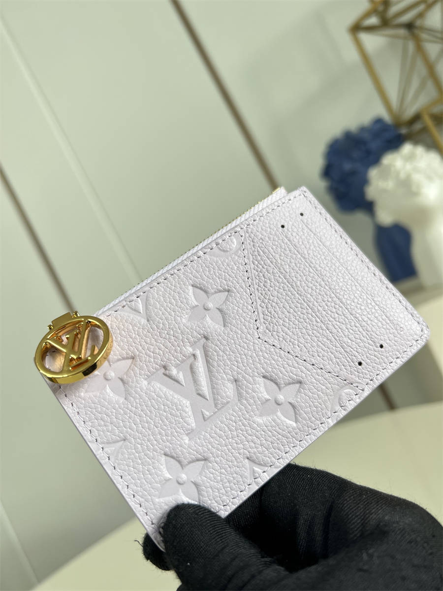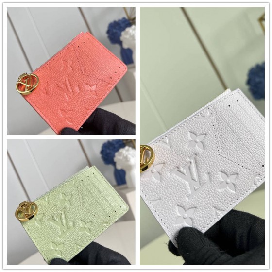 CCK【独家实拍 M25701桔红 】這款Romy名片夾以Monogram Empreinte壓花皮革製造,粉彩色調為實用百搭的配飾添上鮮明的柔美氣息。此優雅的配飾不但可存放名片,還可在風琴式拉鏈夾層中收納現金、零錢或收據,並飾有金色金屬LV Circle標誌拉鏈拉片。產品資料12 x 8 x 0.8 厘米(長度 x 高度 x 闊度)