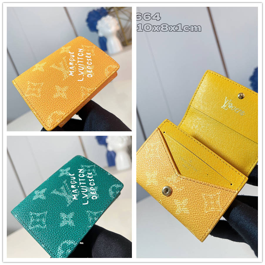 CCK【独家实拍 M12664黄 】本款名片夹以 Monogram Heritage 帆布构筑纤薄轮廓,可轻松置入口袋或手袋。翻盖通过隐藏式按扣固定,开启可见风琴隔层和卡片夹层。牛皮革内衬和源于 Damier 帆布的 Marque L.Vuitton Déposée 标识再添考究细节。8 x 1 x 10.5 厘米 (高 x 宽 x 长度)