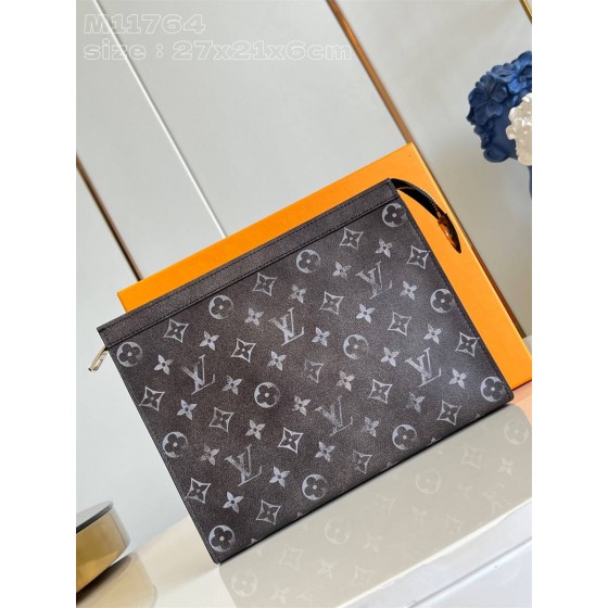 EFK【独家实拍 M11764 】本款 Pochette Voyage 手拿包取材 Brushed Monogram 皮革,以做旧 Monogram 图案诠释缱绻时光。深邃牛皮革饰边邂逅织物内衬,拉链开启卡片夹层和内贴袋,令日常所需轻松随行。27 x 21 x 6 厘米 (长度 x 高 x 宽)