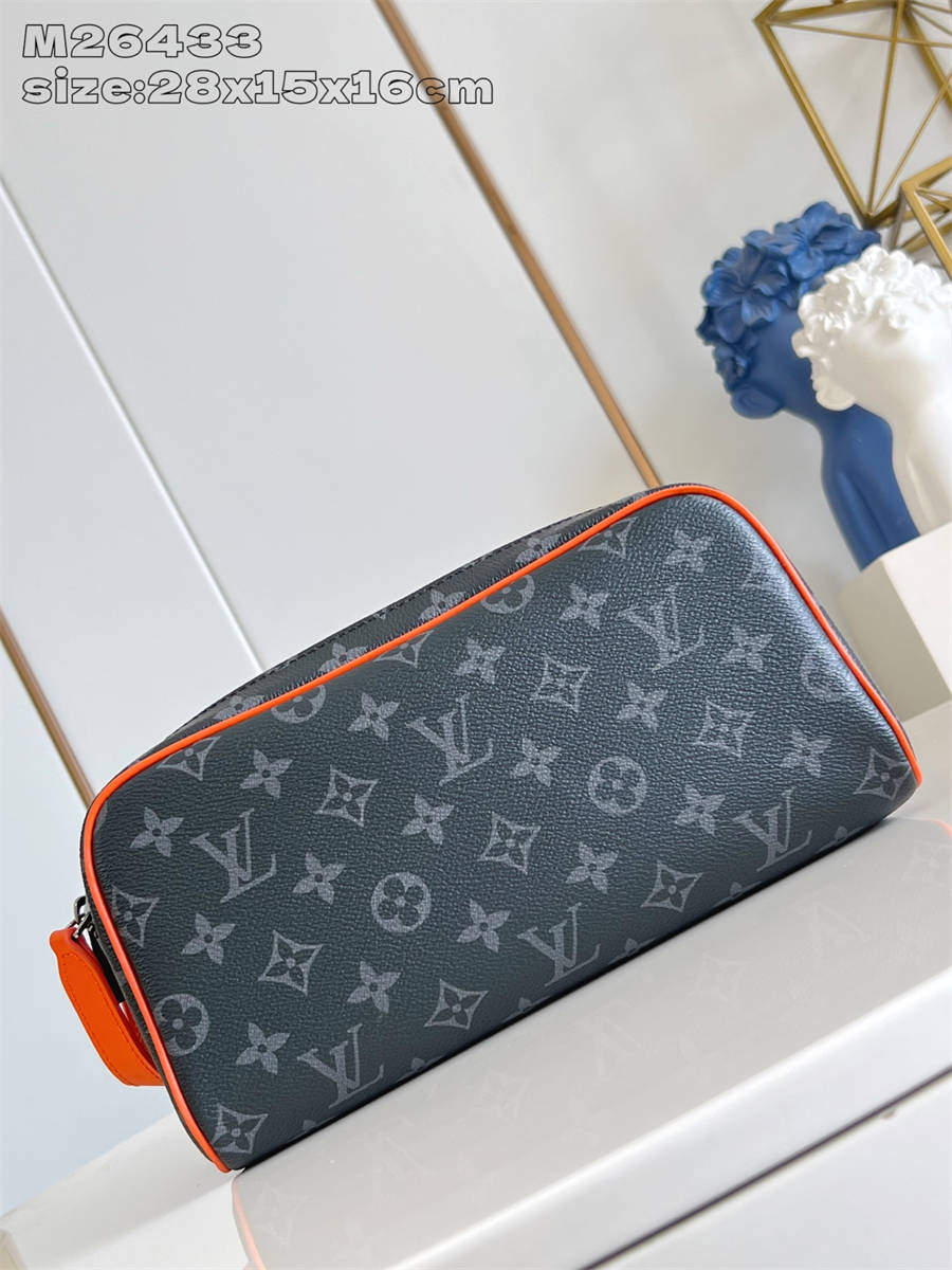 EFK【独家实拍 M 15246橙 】本款 Dopp Kit 盥洗袋选用 Monogram Eclipse 帆布,为 Monogram 爱好者带来内敛之选。充裕空间可收纳旅行所需,双拉链提供安心保护,广口开合方便取放。28 x 15 x 16.5 厘米(长度 x 高 x 宽)