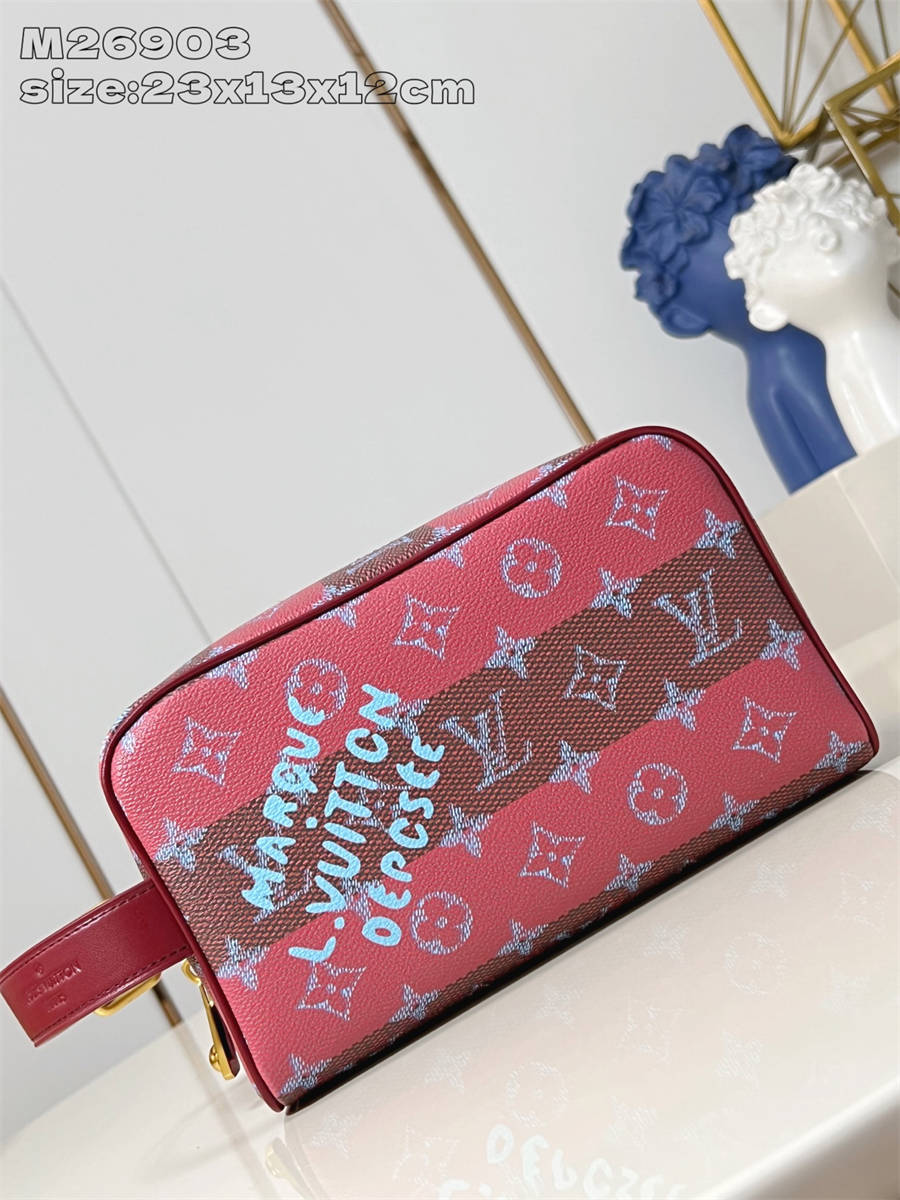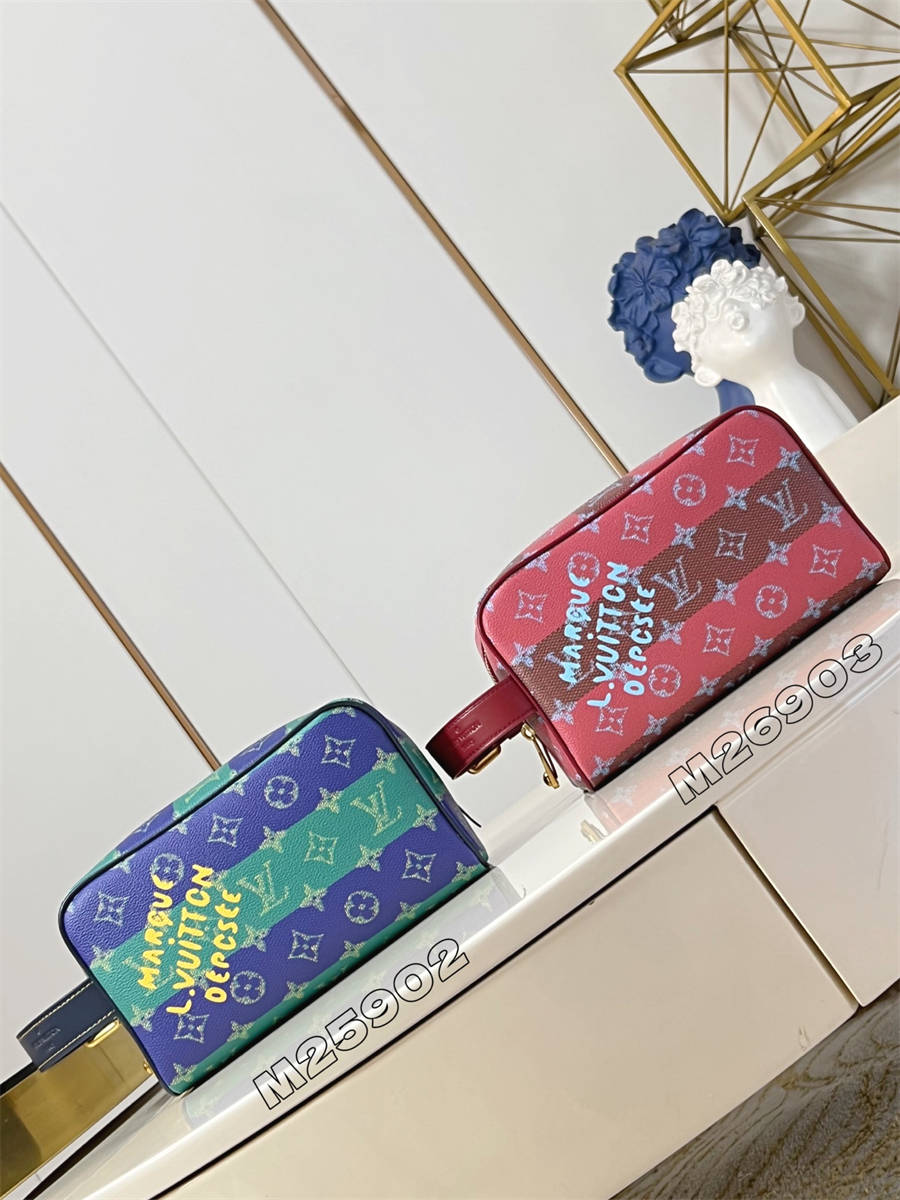 EIK【独家实拍 M25902蓝 】本款 Locker Dopp Kit 盥洗袋取材 Monogram 帆布,融汇当代潮流和典雅格调。紧凑构型内含充裕空间,轻松收纳日常所需。可水洗内衬结合可调节侧手柄,实现便捷随行体验。23 x 13 x 12 厘米 (长度 x 高 x 宽)