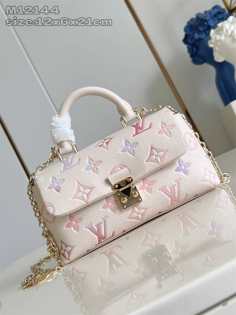 IKK【独家实拍 M12144黑 】本款 Nano Madeleine 手袋以 Monogram Empreinte 皮革演绎 Madeleine 手袋的袖珍版本,搭配经典 S-lock 锁扣和点缀 LV Circle 标识的可拆卸链条。充裕空间可容纳日常所需,手提、肩背或斜挎皆宜。12.5 x 6 x 21 厘米 (高 x 宽 x 长度)