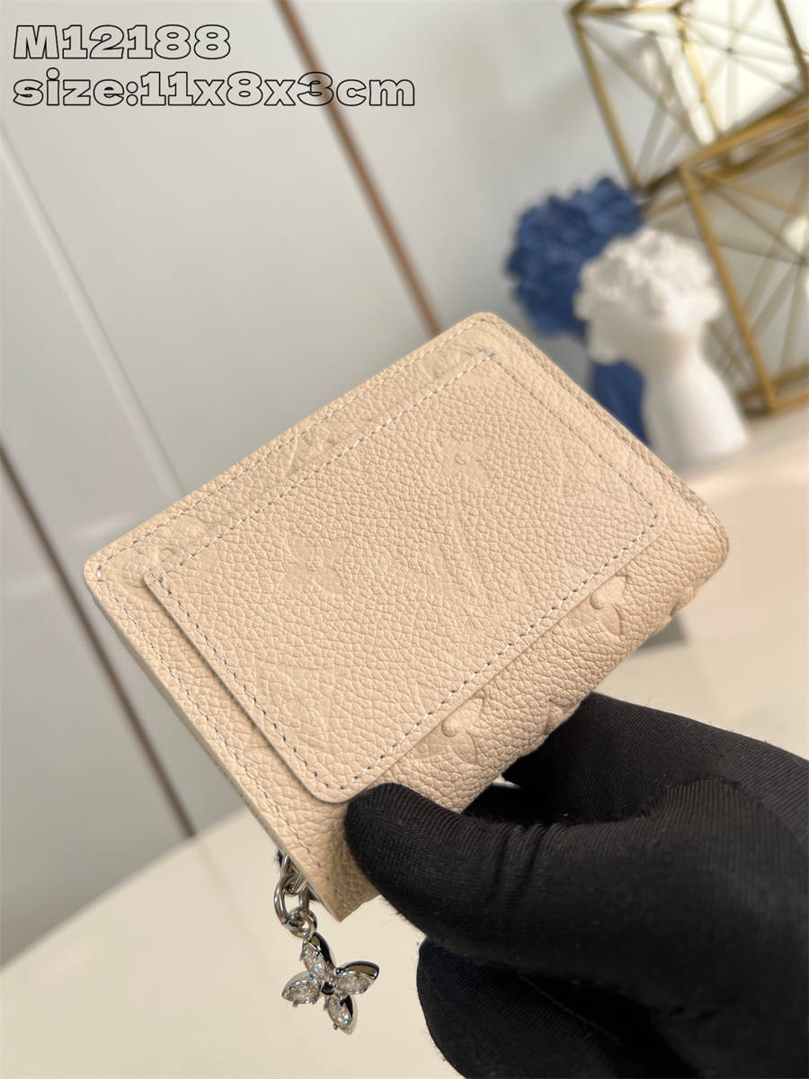 DCK【独家实拍 M12188白 】本款 Cléa 钱夹取材 Monogram Empreinte 软粒面皮革,以双重色调烘托 Monogram 压纹的瞩目气息。玲珑构型内设钞票隔层、拉链零钱袋和卡片夹层。11 x 8.5 x 3.5 厘米(长度 x 高 x 宽)