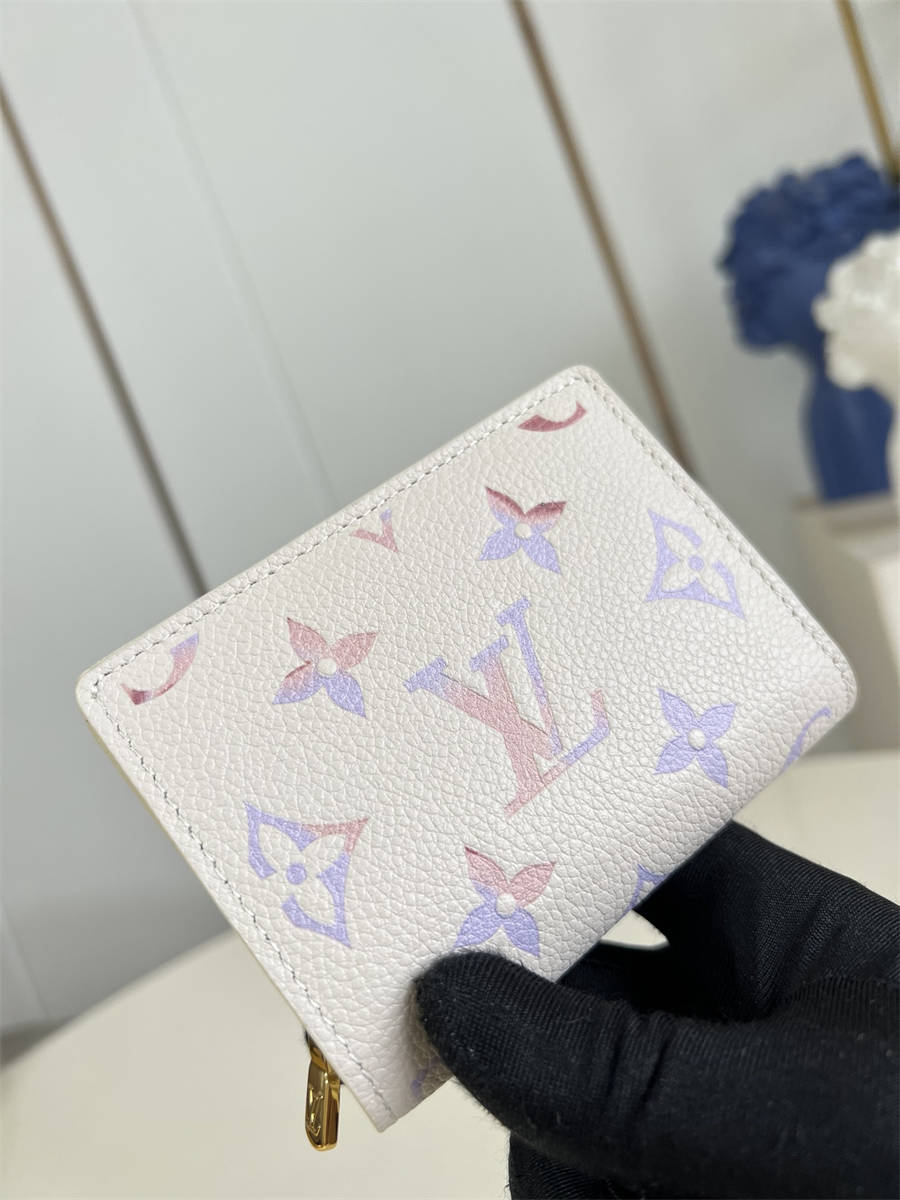 DCK【独家实拍 M25595 】本款 Cléa 钱夹取材 Monogram Empreinte 皮革渲染梦幻色彩,与牛皮革内衬一道释放考究风范,与各式手袋搭配相宜。玲珑构型内设钞票隔层、拉链零钱袋和卡片夹层。11 x 8.5 x 3.5 厘米(长度 x 高 x 宽)