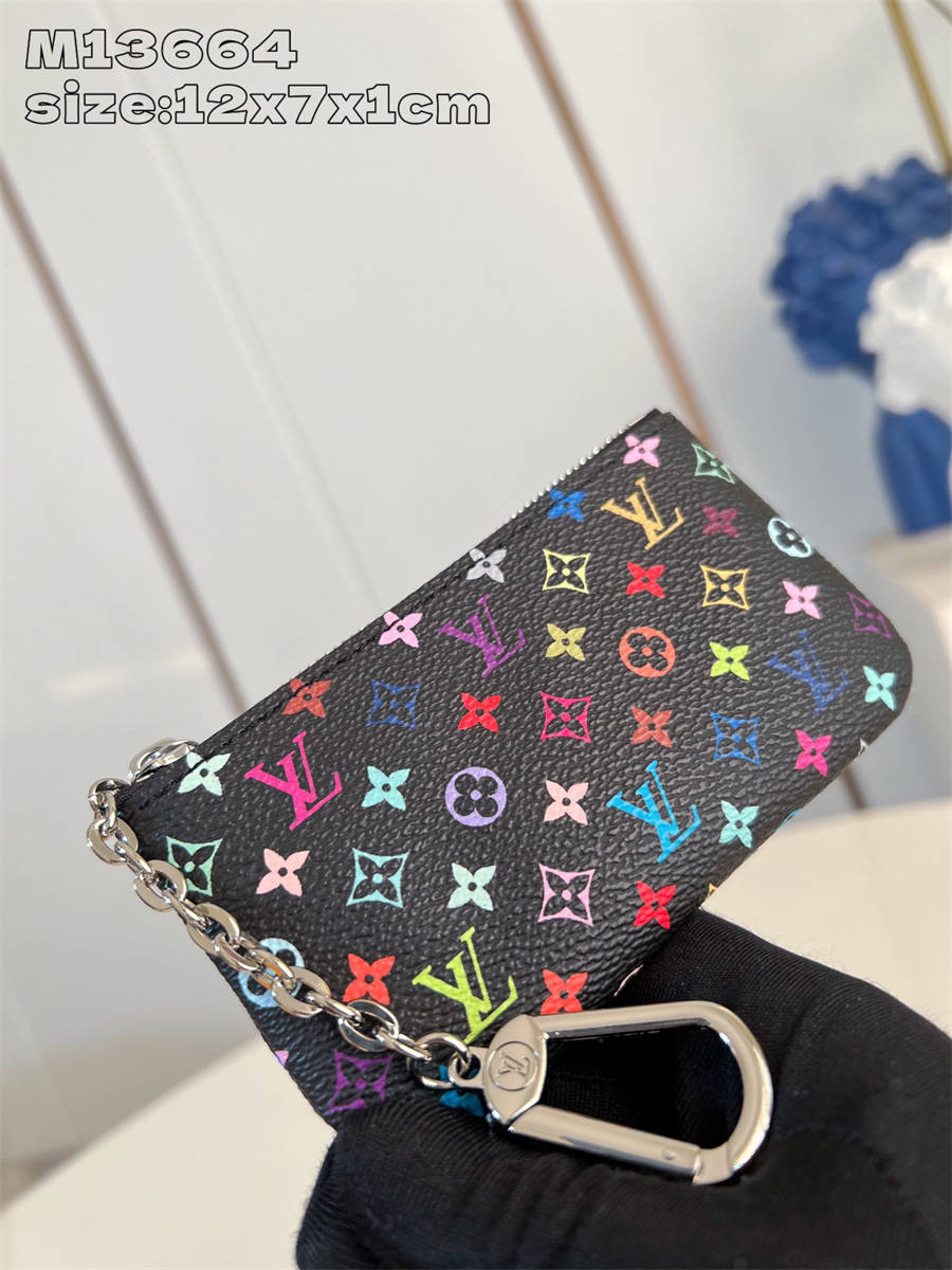 CCK【独家实拍 M13664黑彩 】這款刻版Louis Vuitton x Murakami系列的鑰匙零錢包繽紛絢麗,採用塗層帆布製成,充滿活力的標誌性Monogram圖案以日本藝術家村上隆的主題彩虹色調將品牌標誌重新演譯。鑰匙零錢包設有銀色拉鏈,並備有鏈帶及鉤扣,可穩妥存放鑰匙。12 x 7 x 1.5 厘米 (長度 x 高度 x 闊度)