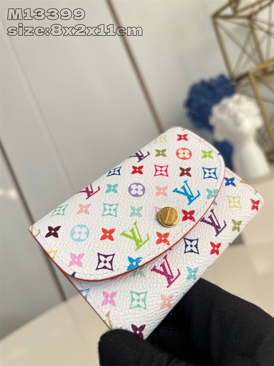 CKK【独家实拍 M13399白彩 】本款 Rosalie 零钱包出自路易威登 x 村上隆再版系列,为 Monogram 涂层帆布浸染活力色调,巧妙致意日本艺术家村上隆的鲜明风格。紧凑构型融入圆润翻盖和按扣开合,内部空间囊括饰有 Monogram 拉链头的拉链零钱袋。8 x 2.5 x 11 厘米 (高 x 宽 x 长度)