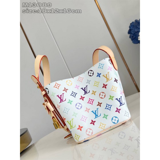 HKK【独家实拍 M13089白彩 】本款 All In BB 手袋以灵动细节传递路易威登 x 村上隆再版系列的玩趣格调。Monogram 涂层帆布呈现艺术家笔下斑斓的彩虹色调,名牌融入蝴蝶结和挂锁装饰。巧用可调节牛皮革手柄和皮革肩带,手提、肩背和斜挎随心而换。18 x 12 x 16 厘米 (高 x 宽 x 长度)