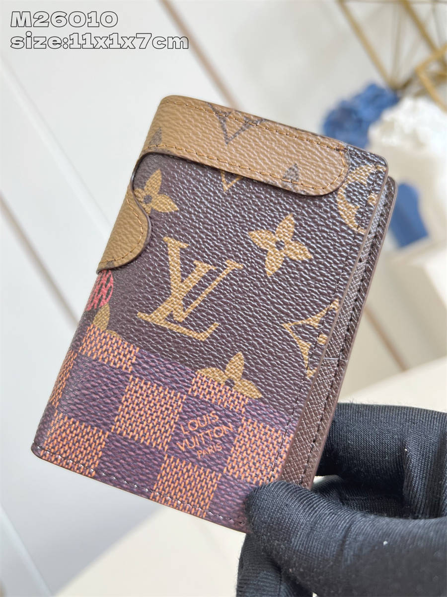 CKK【独家实拍 M26010 】本款口袋钱夹出自 Monogram Landscape 系列,为 Monogram 帆布表面缝制 Monogram Reverse 和 Damier 帆布贴饰,以品牌多重经典元素构筑抽象风景图案。精巧构型可轻松收入多数口袋。11.1 x 1 x 7.5 厘米 (高 x 宽 x 长度)