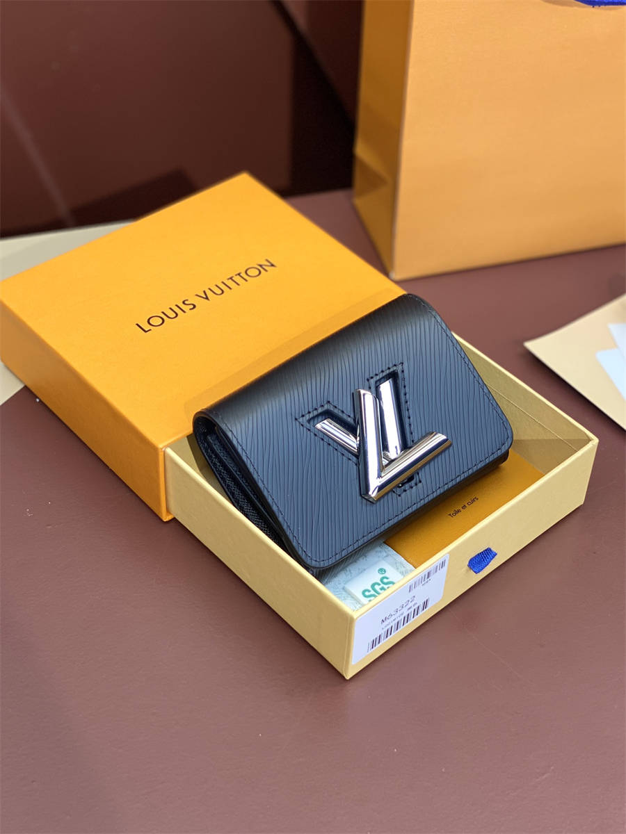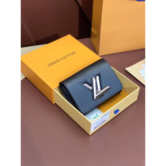 M64414黑色!水波纹!小巧的经典Twist钱夹,由Epi皮革裁制而成,融合众多实用特色设计,展现极为出众的空间利用效率。可轻松收入任何一款Twist手袋,配有该系列标志性的扭锁,轻轻扭动手指,将L转形为V。尺寸:12x9.6x2.5cm