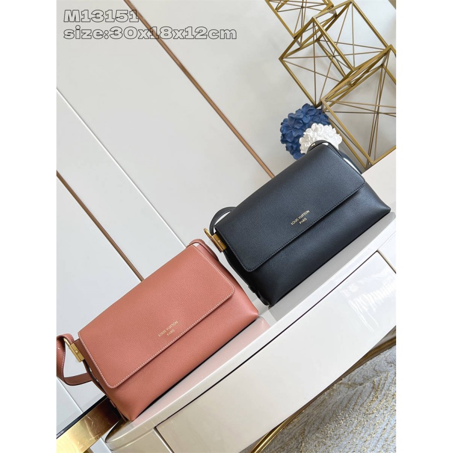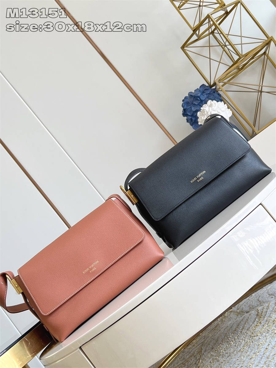 BKKK【独家实拍 M13151黑 】M13148 這款Low Key Messenger手袋是經典Low Key系列的首個翻蓋款式。優雅的日常袋款以柔軟的小牛皮製造,並飾以復古金色掛鎖,營造出靈感來自彷舊風格的飾面。手袋配備可調整長度的手柄,可作多種方式攜帶,同時亦內置以Monogram帆布製造的可拆式拉鏈收納包,倍添實用。30 x 18 x 12 厘米 (長度 x 高度 x 闊度)