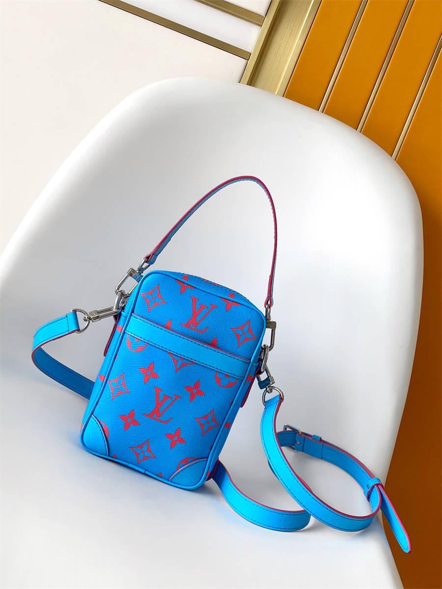 FBK M14685蓝色 顶级原单 男包邮差包 Danube 斜挎包 Danube斜挎包于20世纪80年代推出,最近由Pharrell Williams复兴,在Monogram Glow涂层帆布中脱颖而出。灵感来自迈阿密的霓虹灯,配色为这款紧凑型包增添了现代感。它有一个前平口袋和一个拉链主隔间,增强了其功能。21 x 6 x 16 cm。