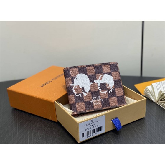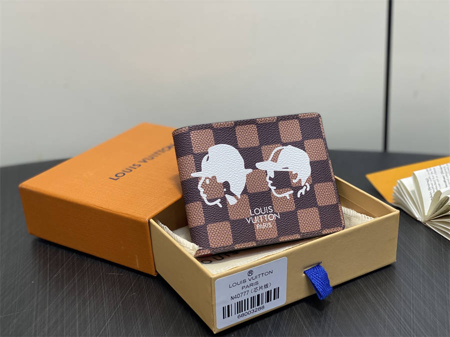 CEK N40777啡格 Lv nigo 联名款 头像丝印短款西装夹钱包 当季新款 MULTIPLE 钱夹 本款 Multiple 钱夹取材 Damier Ebene 帆布,以 Pharrell Williams 和 Nigo 的肖像轮廓致意双方深厚友谊与长久合作。精巧构型囊括卡片夹层、口袋和隔层,可轻松置于多数口袋。9 x 1.5 x 11.5 厘米。