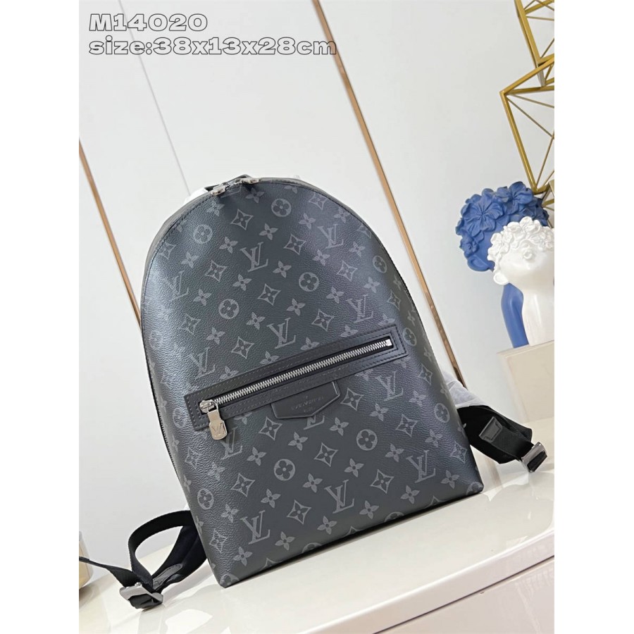 IKK【独家实拍 M14020黑花 】本款 Discovery Slim 双肩包取材 Monogram Eclipse 涂层帆布,为紧凑构型融入笔记本电脑内袋,以潮流之姿轻松驾驭商务或休闲场合。可调节加衬织物肩带提升舒适背携体验,拉链前袋方便取放常用物品。38 x 13 x 28 厘米 (高 x 宽 x 长度)