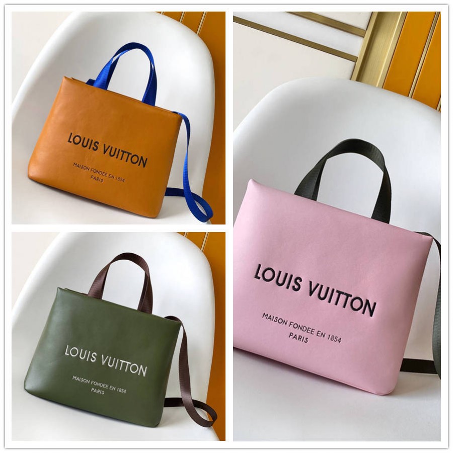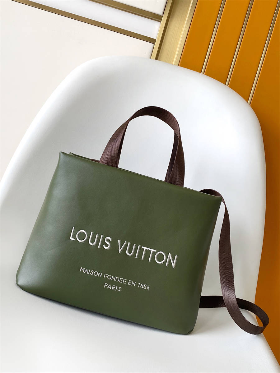 顶级原单 本款 Shopper 中号手袋自路易威登购物袋汲取灵感,于柔软牛皮革抒写 Louis Vuitton 和 Maison Fondée En 1854 字样,搭配顶部手柄和可拆卸肩带。
