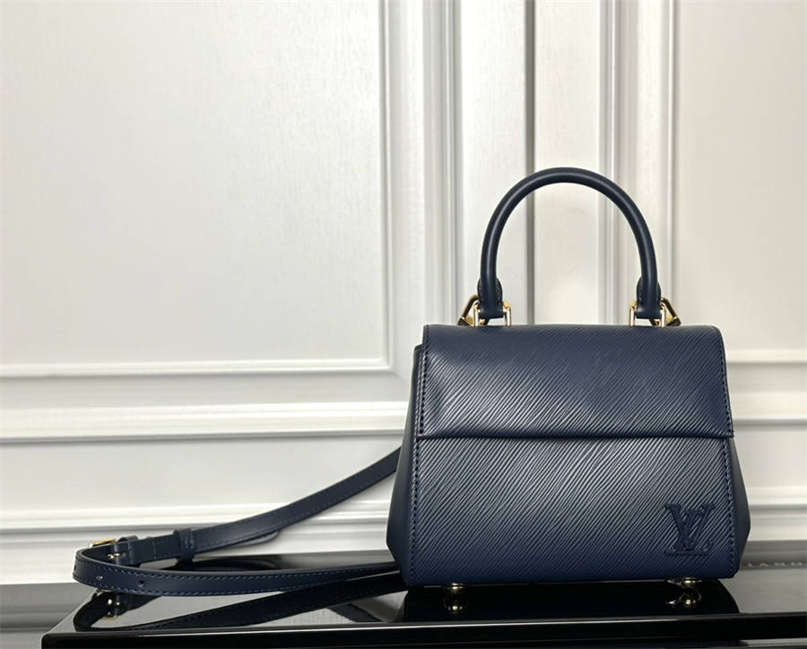 专柜同步电子芯片内码Cluny Mini是航海系列的一部分,由 Epi皮革制成,并用光滑的牛皮皮革装饰。深度染色的色块处理为这个小包带来了优雅。它具有用于手提的卷皮顶部手柄以及可拆卸和可调节的皮革肩带。它用树脂的LV首字母签名20.0x16.0x7.5cm