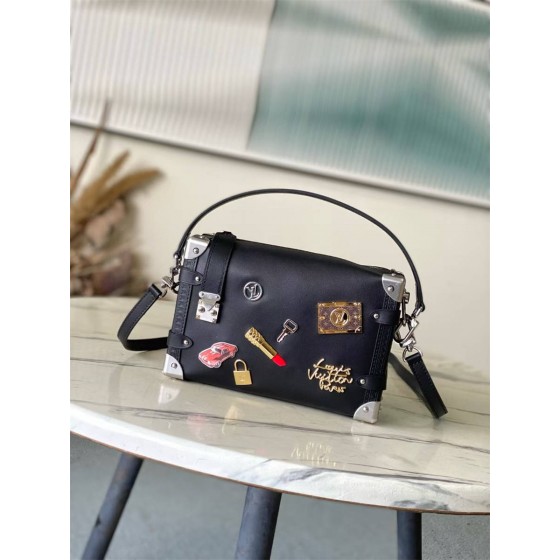 BKKK顶级原单 M25568 艺术总监Nicolas Ghesquiere回测2015春夏秀场设计,以个性笔触演绎此款SideTrunk中号手袋。牛皮革包身点缀缤纷金属装饰,呈现LVStickers元素的创意魅力。不同色泽的金属件再添匠心细节,斜挎、肩背或手提皆宜。尺寸:23.5 × 16 × 8.5 cm