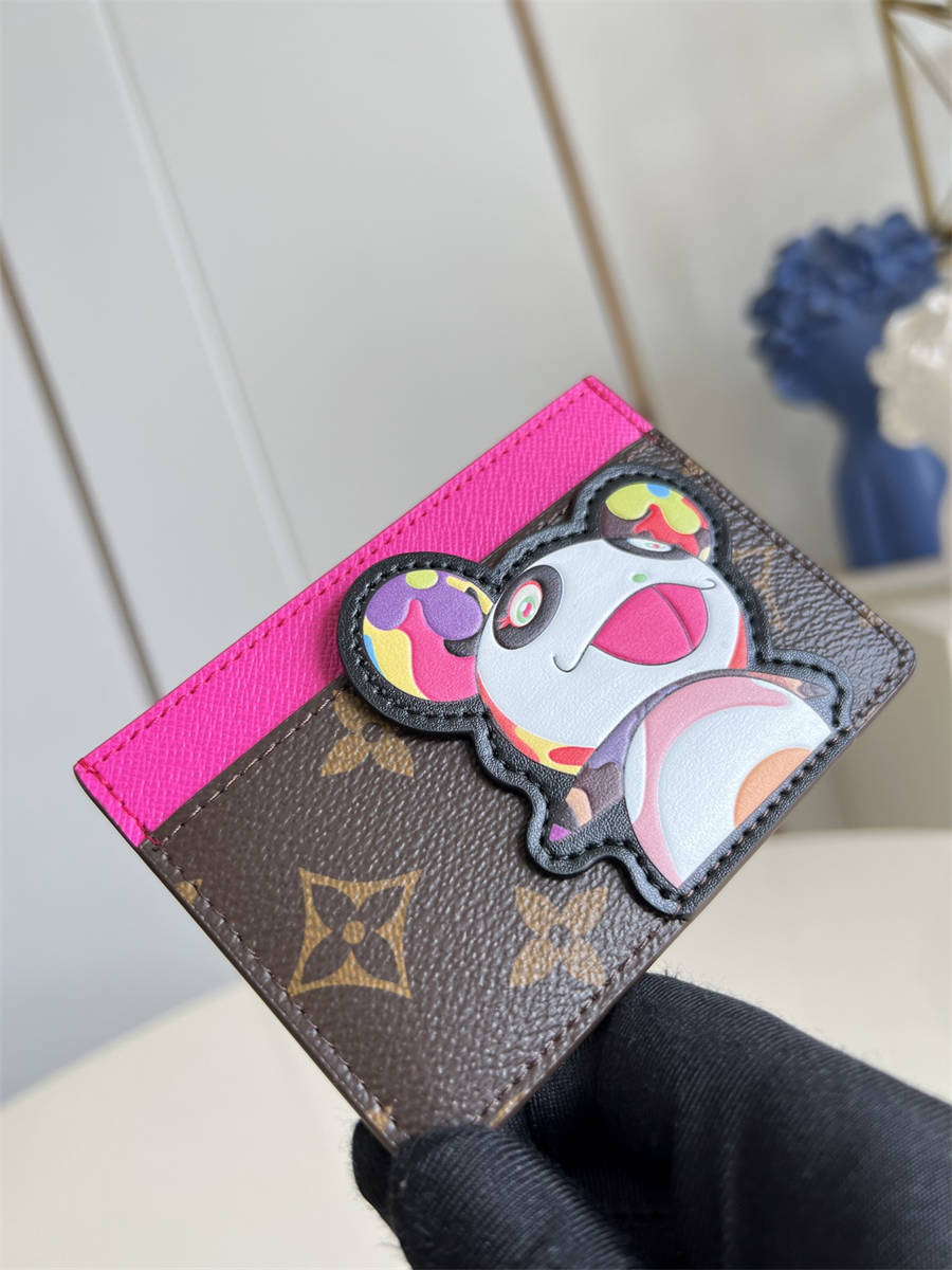 CKK【独家实拍 M13439 】本款卡夹出自路易威登 x 村上隆再版系列,为 Monogram 图案叠加日本艺术家村上隆笔下的熊猫形象,与上缘的明丽亮彩交相辉映。涂层帆布裁出流畅廓形,多重隔层实现卡片和票据的有序收纳。7 x 0.5 x 11 厘米 (高 x 宽 x 长度)