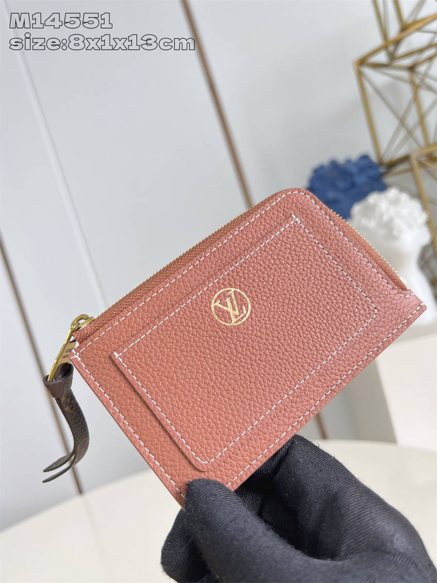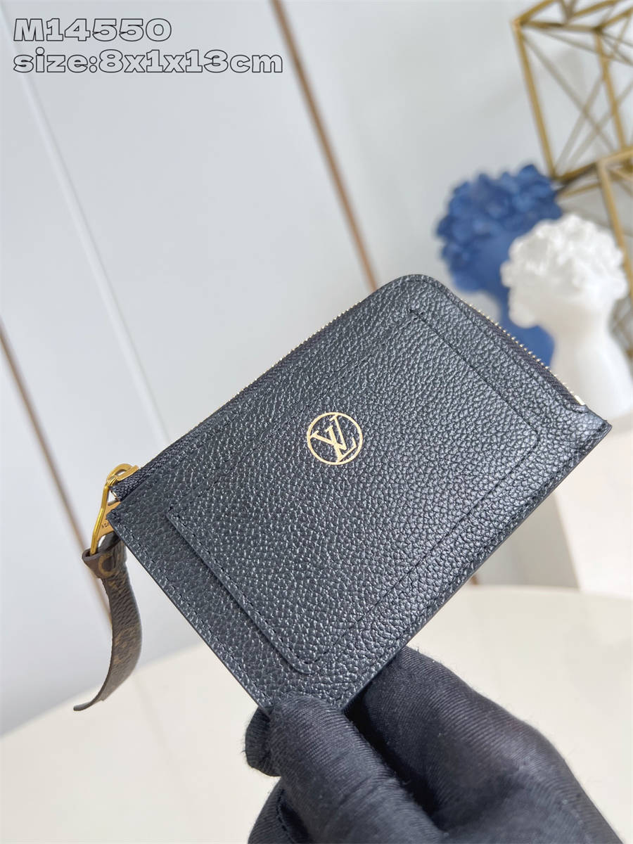 CEK【独家实拍 M14550黑 】本款 Low Key 卡夹以经典牛皮革搭配做旧金属件。背面卡片夹层及前置收纳袋可轻松归整随身小物。标志性 LV Circle 标识致敬同系列的经典挂锁设计 8.5 x 1 x 13 厘米 (高 x 宽 x 长度)