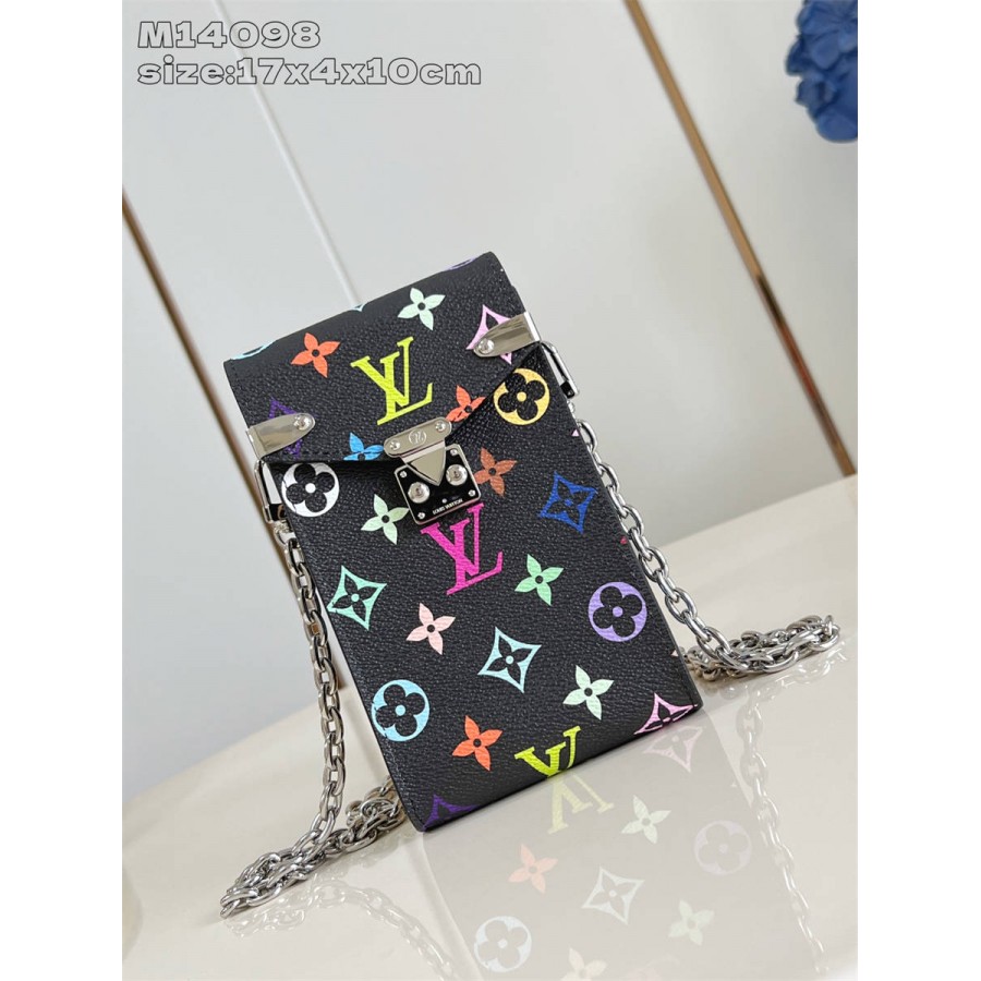 FDK【独家实拍 M14098黑彩】村上隆合作系列 本款 Métis 手机包向路易威登经典行李箱采撷灵感,以整片 Monogram 帆布裁出工致构型。S-lock 锁扣和金属包角娓娓道出品牌悠久的制箱传统。系上可拆卸链条,瞬间解放双手。17.5 x 4 x 10.4 厘米 (高 x 宽 x 长度)