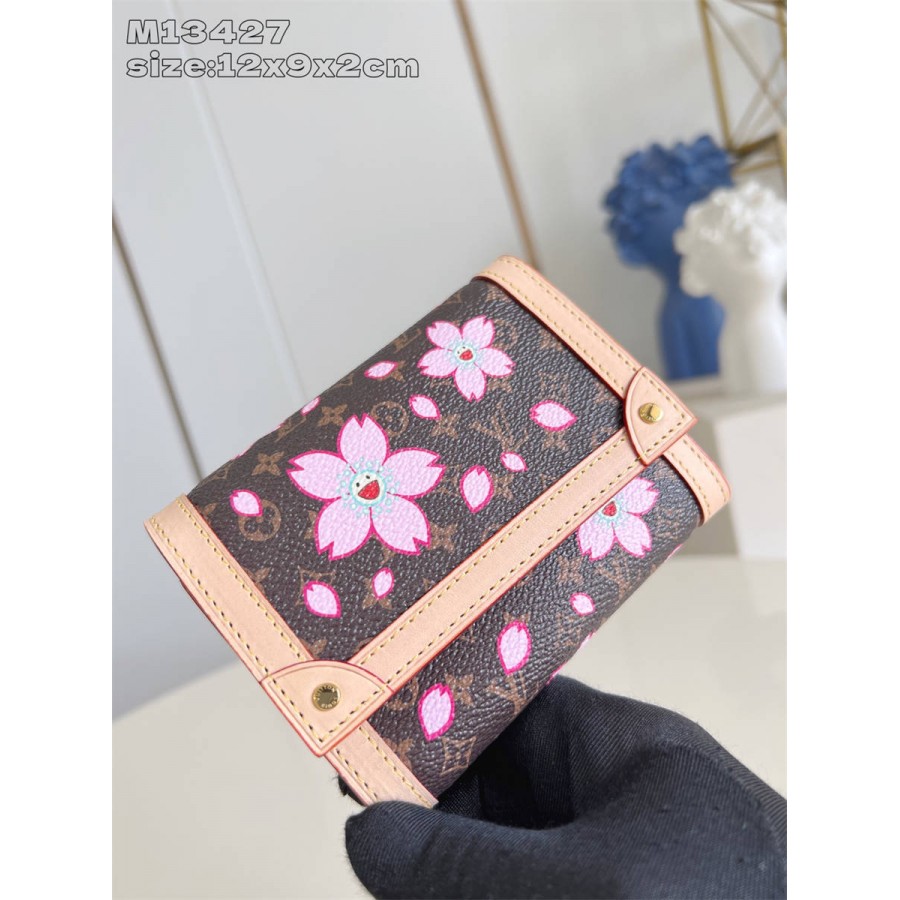DKK【独家实拍 M13427 】這款小巧的Victorine錢包源自備受愛戴的刻版Louis Vuitton x Murakami聯乘系列,設計洋溢玩味氣息,而且功能實用,以絢麗色彩煥發迷人活力。錢包採用Monogram塗層帆布製造,並散綴Cherry Blossom圖案,展現日本藝術家村上隆獨特的繽紛風格,而天然牛皮飾邊更添完美點綴。12 x 9.5 x 2.5 厘米 (長度 x 高度 x 闊度)