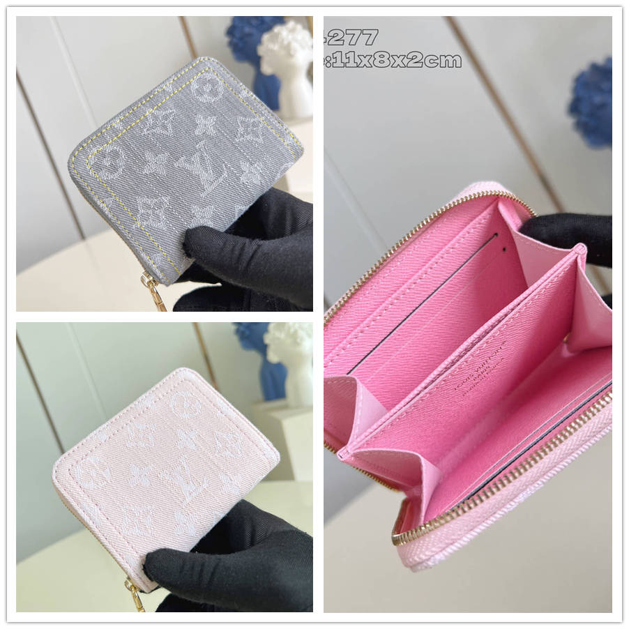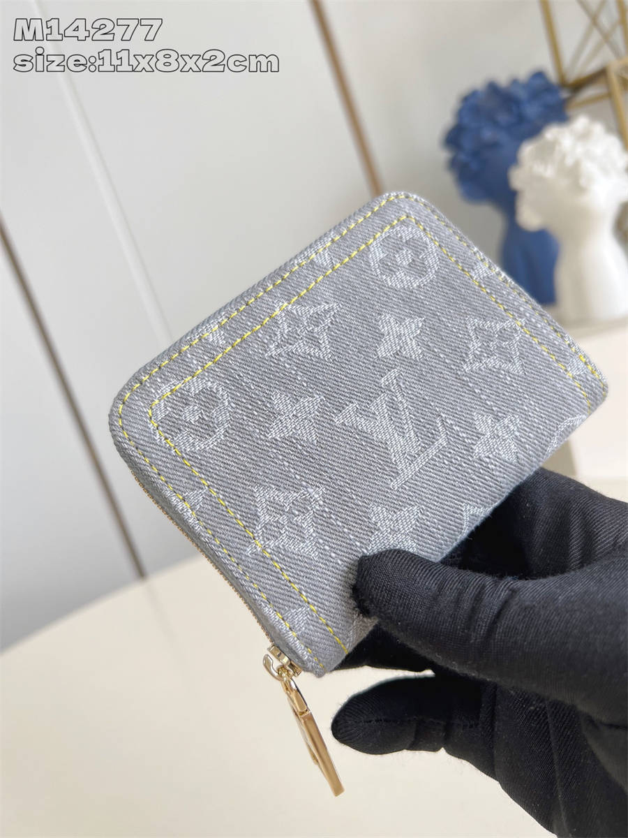 CCK【独家实拍 M14277灰 】這款牛仔拉鏈零錢包採用百搭的洗水飾面,展現懷舊復古氣息。實用的設計飾以金色拉鏈及LV鐫刻拉鏈頭,並配備多個隔層、貼袋及名片夾層,可妥善收納貴重物品。11 x 8.5 x 2 厘米 (長度 x 高度 x 闊度)