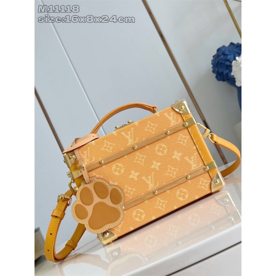 BEFK【独家实拍 M11118黄 】M12458 本款 Handle Trunk 手袋取材 Monogram Heritage 帆布,将传统 Damier 元素的细节移植至此,以 Pharrell Williams 早期作品中的经纬织纹和 Marque L.Vuitton Déposée 标识焕新 Monogram 图案。16.5 x 8 x 24 厘米 (高 x 宽 x 长度)