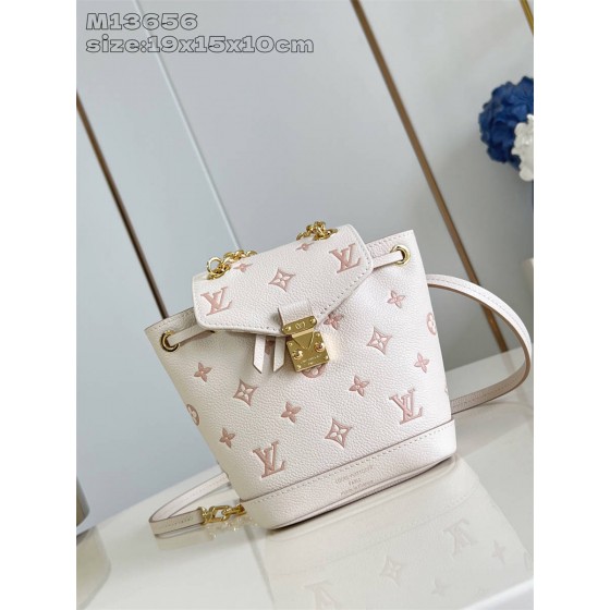 IKK【独家实拍 M13656奶油丝印 】這款Nano Noé背包今季採用精緻雙色設計,日夜造型皆宜。袋款選用皮革製作,綴以金色鏈帶,較淺色的Monogram壓花圖案配有對比色邊框。內部空間寬敞,可放置手機、小型錢包和唇膏等日常必需品。19 x 15 x 10 厘米 (長度 x 高度 x 闊度)
