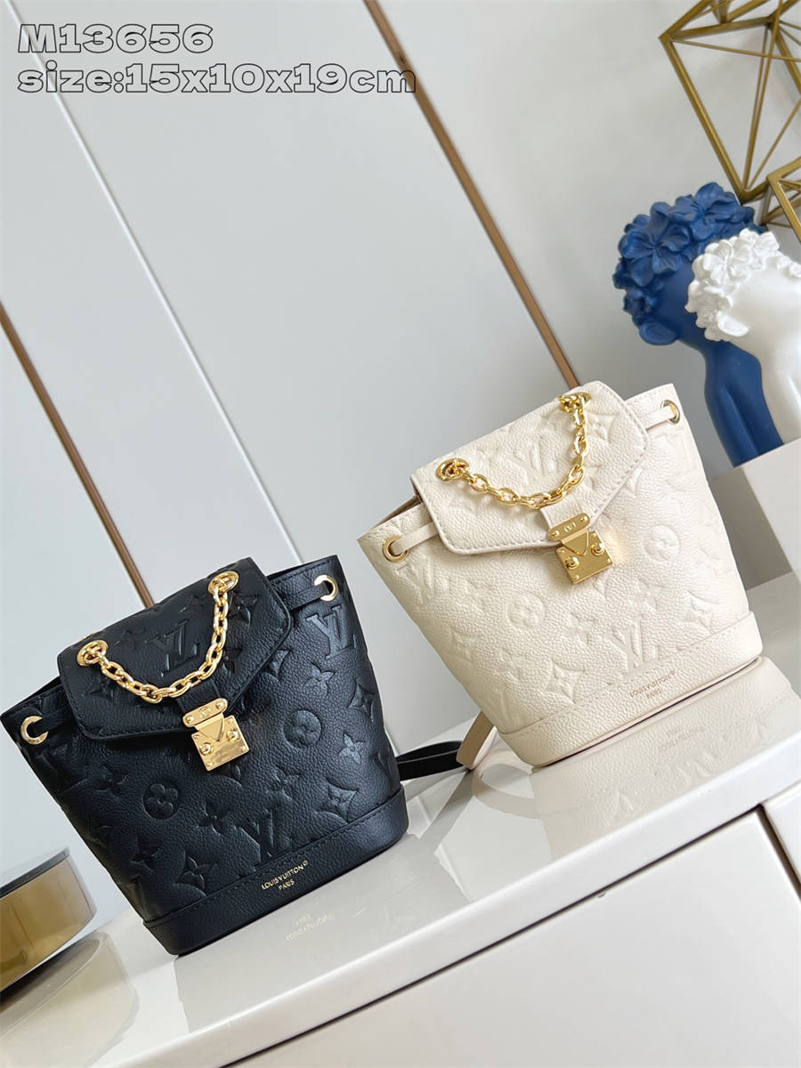 IKK【独家实拍 M13656黑 】M14549 本款 Nano Noé 双肩包取材 Monogram Empreinte 皮革,以抽绳设计和柔润轮廓呼应原版构型,彰显功能和潮流的兼收并蓄。耀目 S-lock 锁扣点亮细节,卸下皮革肩带即可化身迷你单肩包。15 x 10 x 19 厘米 (高 x 宽 x 长度)