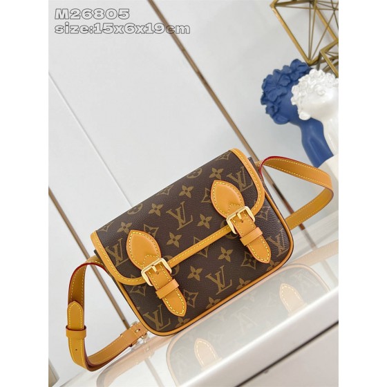 FDK【独家实拍 M26805 】本款 Satchel 迷你手袋出自 Monogram Archive 系列,为柔软 Monogram 帆布包身搭配做旧皮革饰边和耀目金属件。迷你邮差包构型可容纳手机及钱夹等日常用品。可调节肩带确保舒适肩背或斜跨。15 x 6 x 19.5 厘米 (高 x 宽 x 长度)