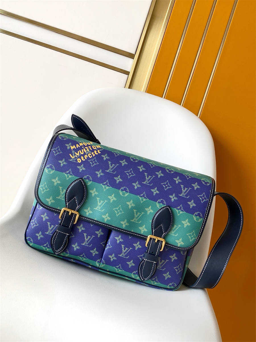 GCK M15187 顶级原单 变码芯片163C 本款Satchel邮差包为Monogram Heritage涂层帆布点缀做旧金属搭扣,于宽敞构型融入织物内衬,可轻松驾驭商务场合与休闲出行。内里加衬笔记本电脑隔层和前袋实现齐整收纳,MarqueLVuitton Déposée标识再添品牌笔触。