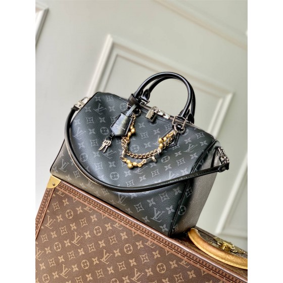 本款 Speedy Soft 30 手袋出自 LV Ski 系列,以 Monogram Eclipse 帆布焕新经典设计。双链条、褶皱皮革钥匙包和标志性挂锁彰显华美细节,恰宜尺寸可容纳平板电脑和其他日常所需。