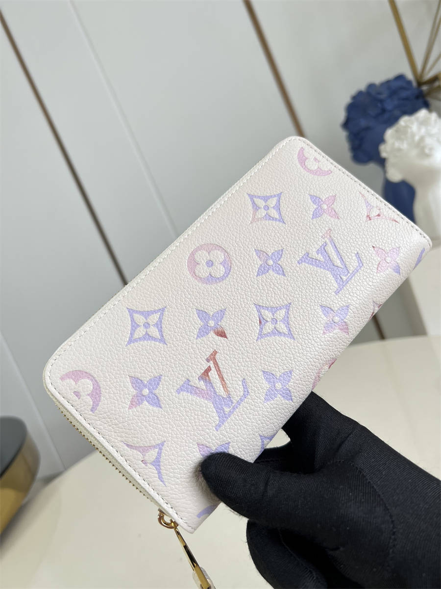 DGK【独家实拍 M25594 】本款 zippy 钱夹 取材Monogram Empreinte 皮革渲染梦幻色彩,与牛皮革内衬一道释放考究风范,与各式手袋搭配相宜全拉链设计搭配考究内里,小巧构型颇具功能性。亦可用作手拿包。10.5 x 2.5 x 19.5 厘米 (高 x 宽 x 长度)