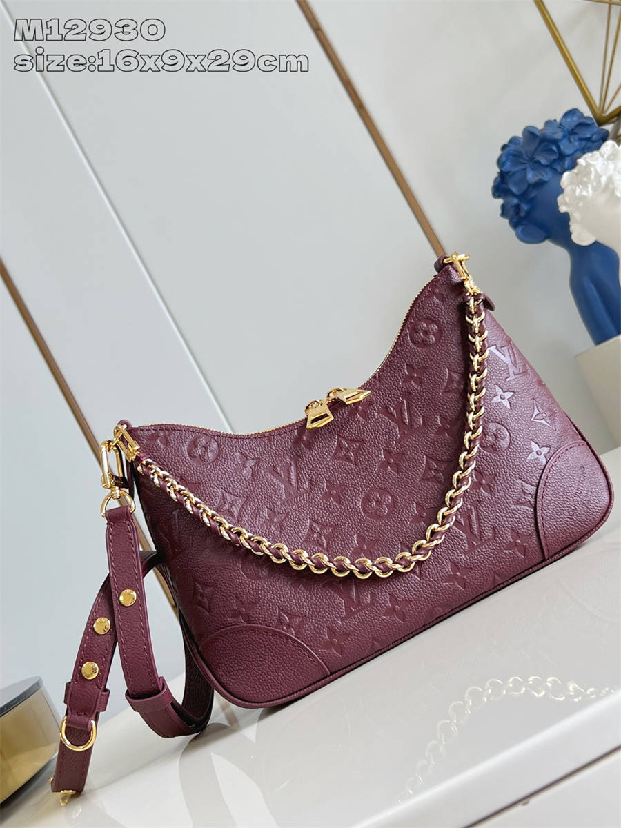 IFK【独家实拍 M12930紫红压花】 本款 Boulogne 手袋以同色美学重绎经典 Monogram Empreinte 皮革,借可拆卸链条与 LV 花卉装饰注入优雅莹泽。灵巧构型实现多种背携方式,内贴袋可轻松收纳智能手机 16 x 9.5 x 29 厘米 (高 x 宽 x 长度)