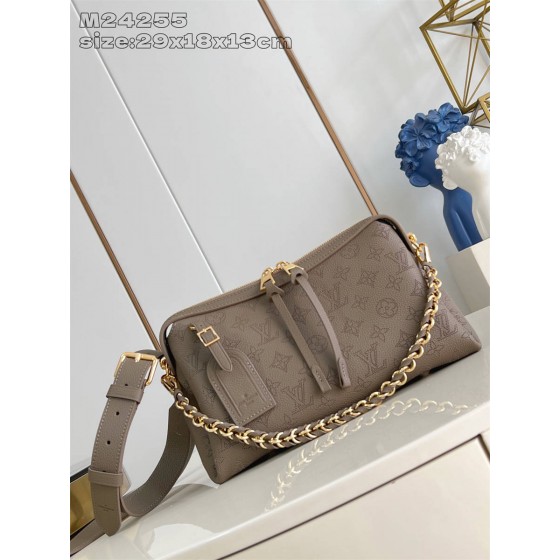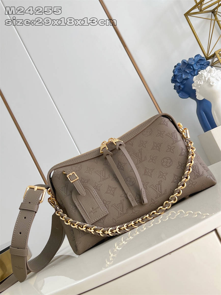 JFK【独家实拍 M24255墨绿 】M25904 本款 Mahina Hand It All 小号手袋取材细腻穿孔牛皮革,以优雅垂坠质感烘托别致包身轮廓。皮革肩带和链条皮革编织手柄均可拆卸,为日常出行提供潮流之选。29 x 18 x 13 厘米(长度 x 高 x 宽)