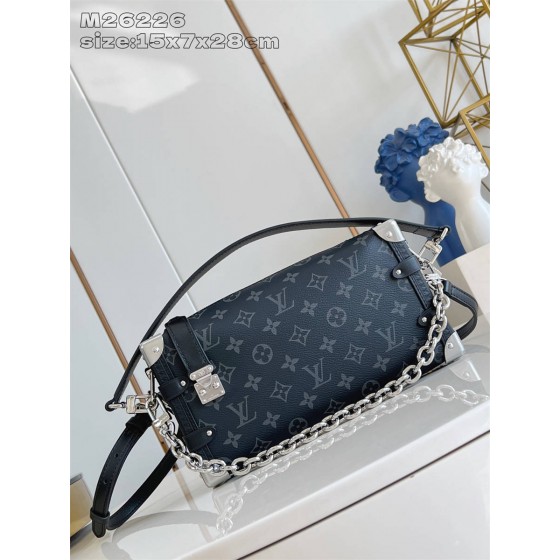 IKK【独家实拍 M26226 】Side Trunk 系列推出 East West 版本,以 Monogram Eclipse 帆布塑造经典设计。柔软廓形囊括充裕空间,S-lock 锁扣、硬箱包角和莹泽链条延续标志性笔触,手提或通过可拆卸长肩带斜挎皆宜,成就日常出行佳选。15 x 7 x 28 厘米 (高 x 宽 x 长度)