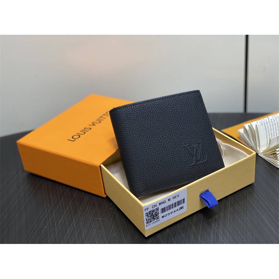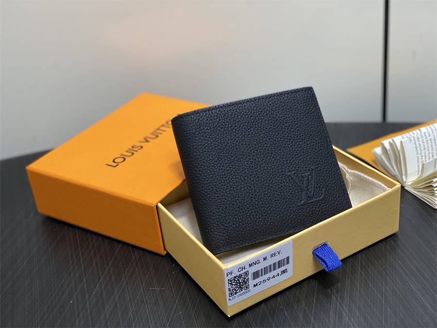 顶级原单 M25944黑色 荔枝纹全皮短款西装夹 Multiple wallet 钱包 采用柔韧且耐用的打蜡处理的小牛皮材质,展现优雅精髓的紧凑的多重钱包。结合高级的粒面皮革材料和浮雕处理的LV首字母,带来令人愉悦的触感的设计。拥有多个可以存放卡片和收据的插槽、两个内部口袋和两个可以存放钞票的储物空间的实用物品。11 x 11 x 1.5厘米
