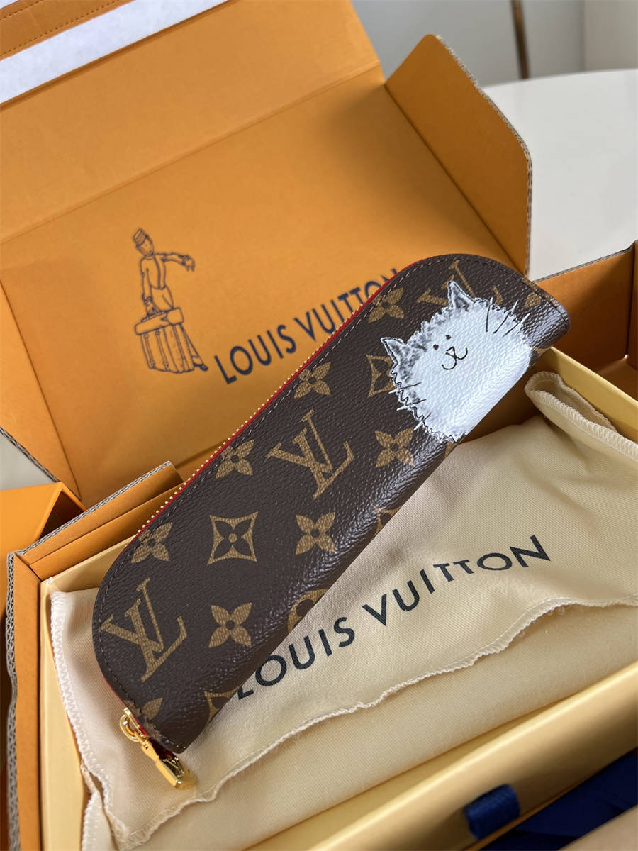 CCK【独家实拍 GL1396 】这款Charlotte笔袋缀以插画家Grace Coddington的精美插画,为经典元素更添精致感。外层的Monogram涂层帆布饰有一只微笑的猫咪图案,內里的皮革则配有更多被老鼠环绕的猫咪图案。笔袋以金色拉链搭配夺目的红色条纹,突显优雅气质。20x7x2cm