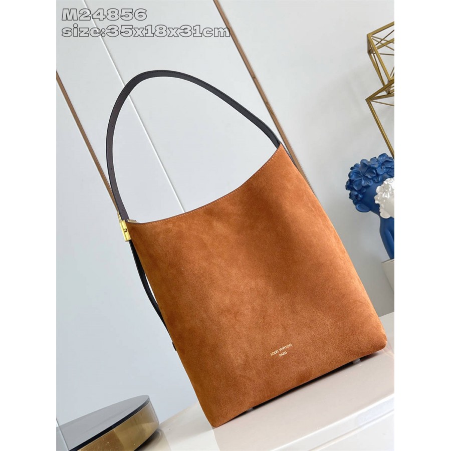 BKKK【独家实拍 M24856棕绒 】M25516 本款 low key Hobo 中号手袋取材柔滑绒面牛皮革,以品牌利落构型回溯 1970 年代的波西米亚美学。皮革饰边与做旧金属挂锁升级考究格调,内袋和可拆卸 Monogram 收纳袋令日常小物轻松随行。35 x 18 x 31 厘米 (高 x 宽 x 长度)